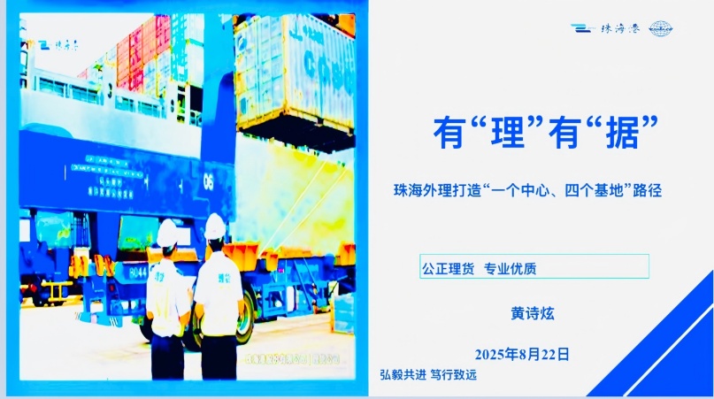 在引领大家深入了解行业现状的基础上,黄诗炫着眼未来,重点阐述了公司面对新形势的业务拓展路径与对行业发展趋势的前瞻性判断。通过珠海外理近年来业务拓展的成功案例,生动地展示了公司跳出理货、多元化发展的实践路径,展现了公司“走出去”的毅力和决心。他明确指出,在粤港澳大湾区深度融合与珠三角沿海经济带加速建设的重大历史机遇下,珠海外理果断打破单一港口、依赖母港的传统发展局限,以更高远的视野谋划布局,创新性地提出了以珠海为中心,联动江门、阳江、深圳、揭阳的“一个中心、四个基地”发展路径,旨在构建“中心牵引、四地联动”的区域协同发展新格局,通过整合资源、拓展市场,全面提升公司的市场竞争力。同时,珠海外理通过代管常熟中理,珠海、常熟两家理货企业相互联动,共促发展。